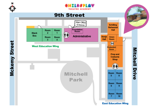 Rehearsal Halls: the Corner of 9th Street and Mitchell Drive